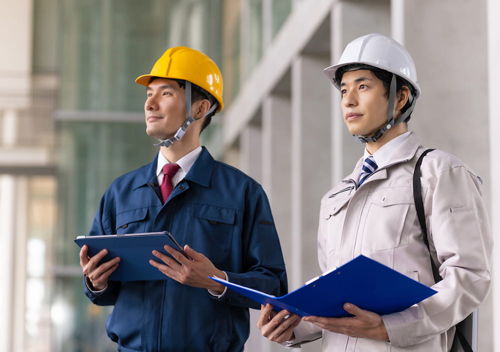 新設建築物でなく、既存建築構造物の維持管理を目的とした点検・調査、診断を行っています。点検では、特定建築物や建築設備・防火設備を対象とした定期点検、調査では外壁タイル等の劣化調査や構造物躯体等の劣化調査があります。